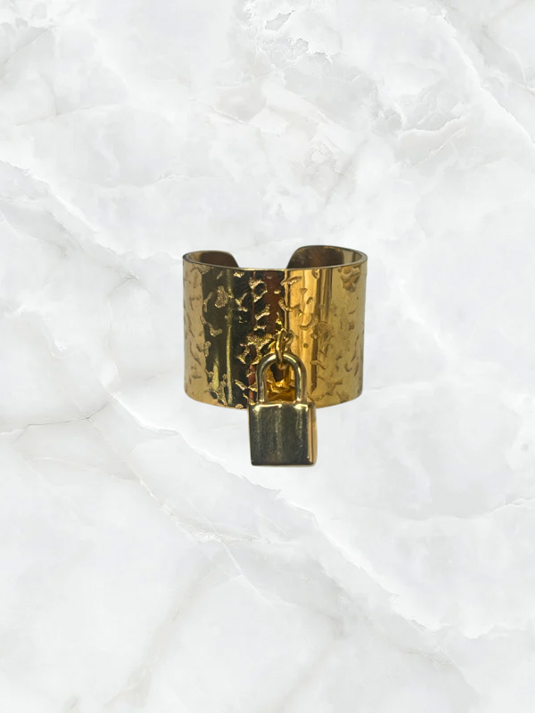 - Bague breloque cadenas en acier inoxydable