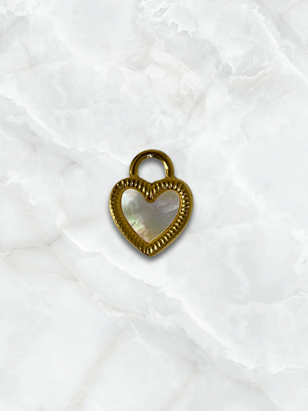- Charm Coeur nacré en acier inoxydable